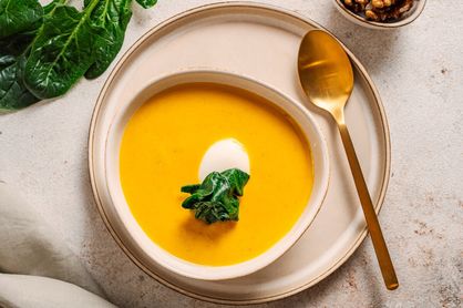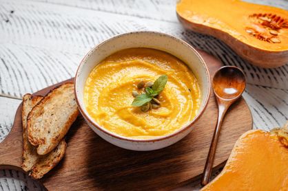 Ajustează gustul cu condimente sau ierburi aromatice după preferință și servește supa alături de semințe de dovleac prăjite, crutoane sau câteva picături de ulei de dovleac.